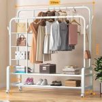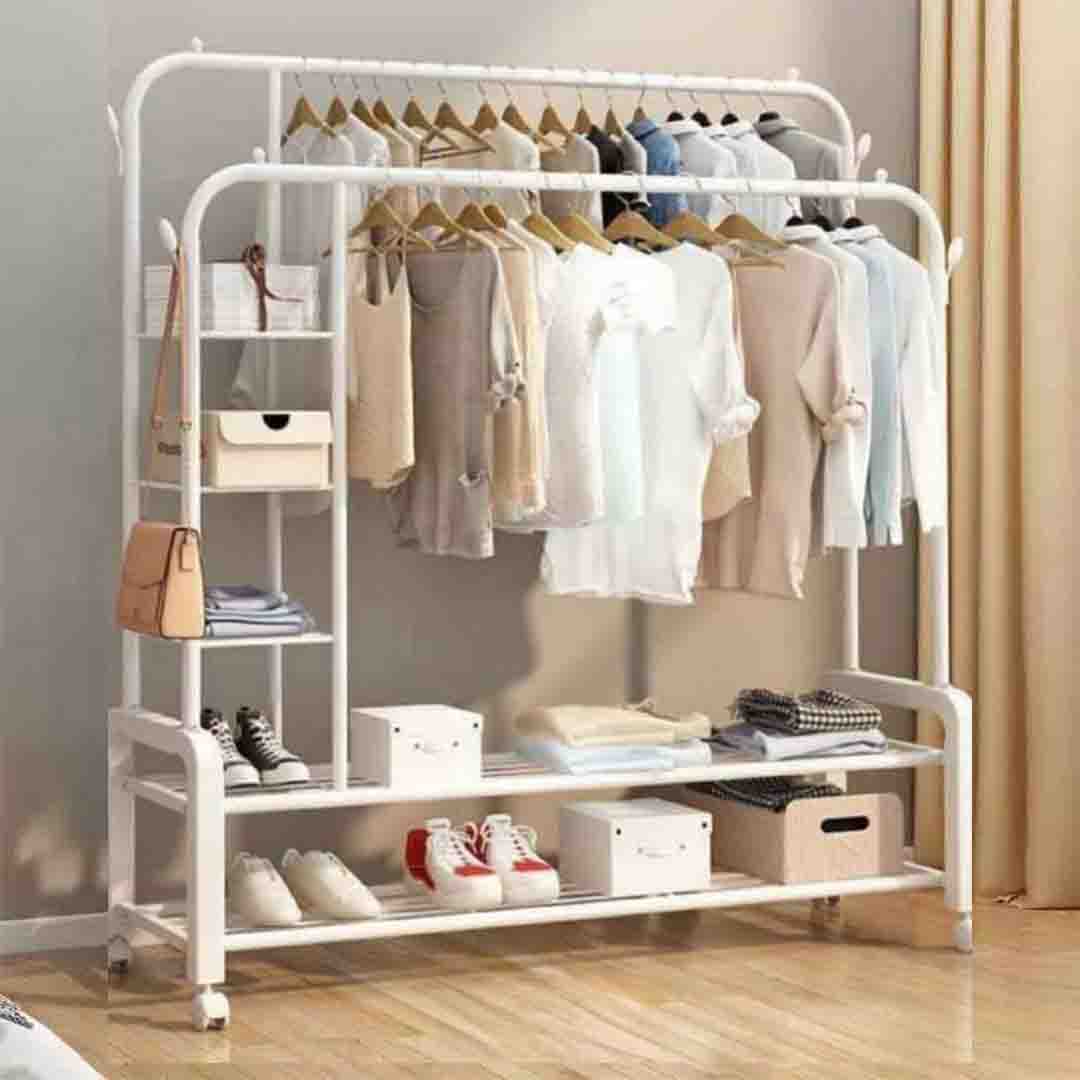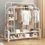 ستاند معدني للملابس مع رفوف سفلية وجانبية