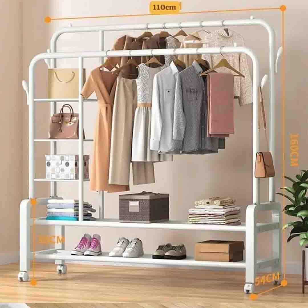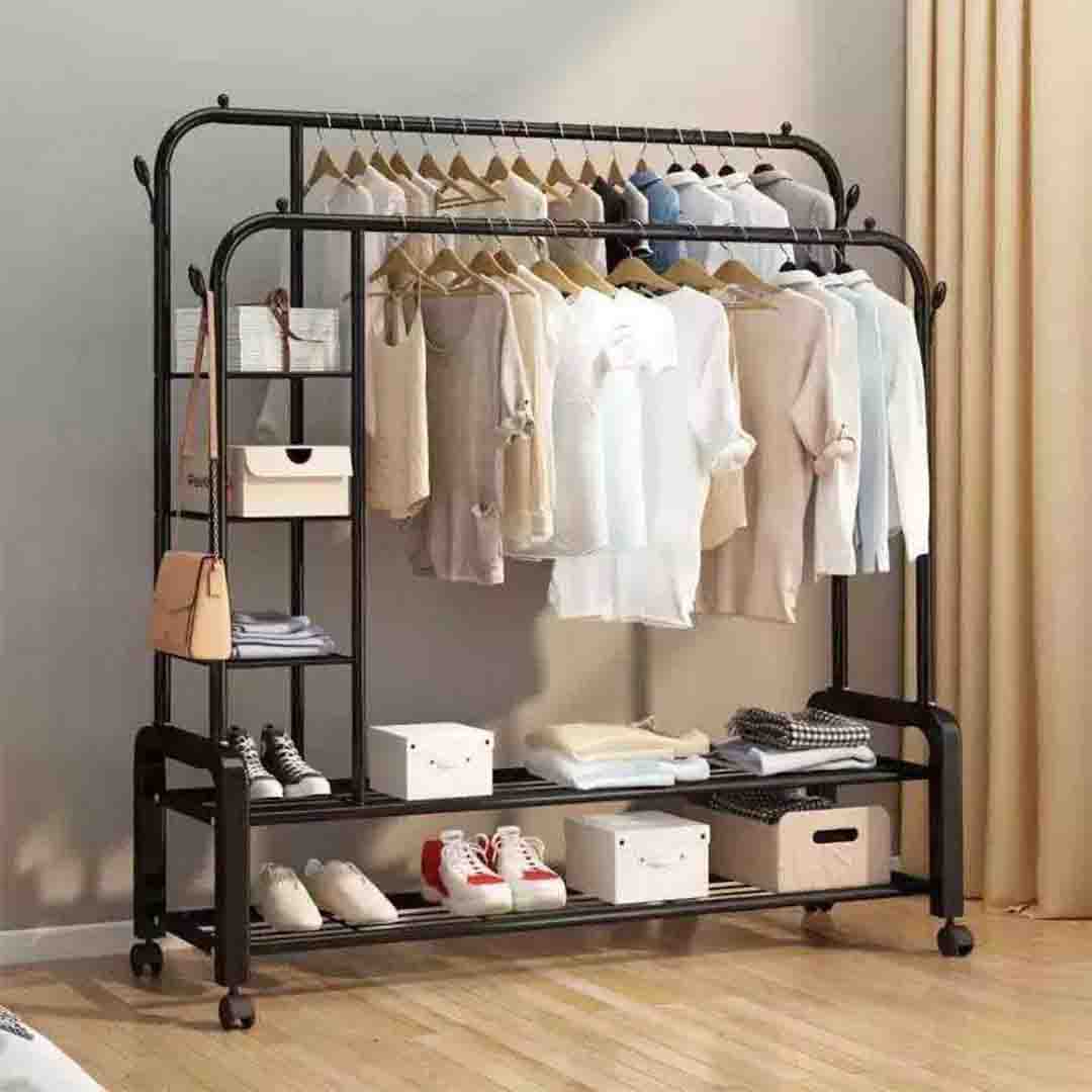 #ستاند ملابس طبقتين مع رفوف